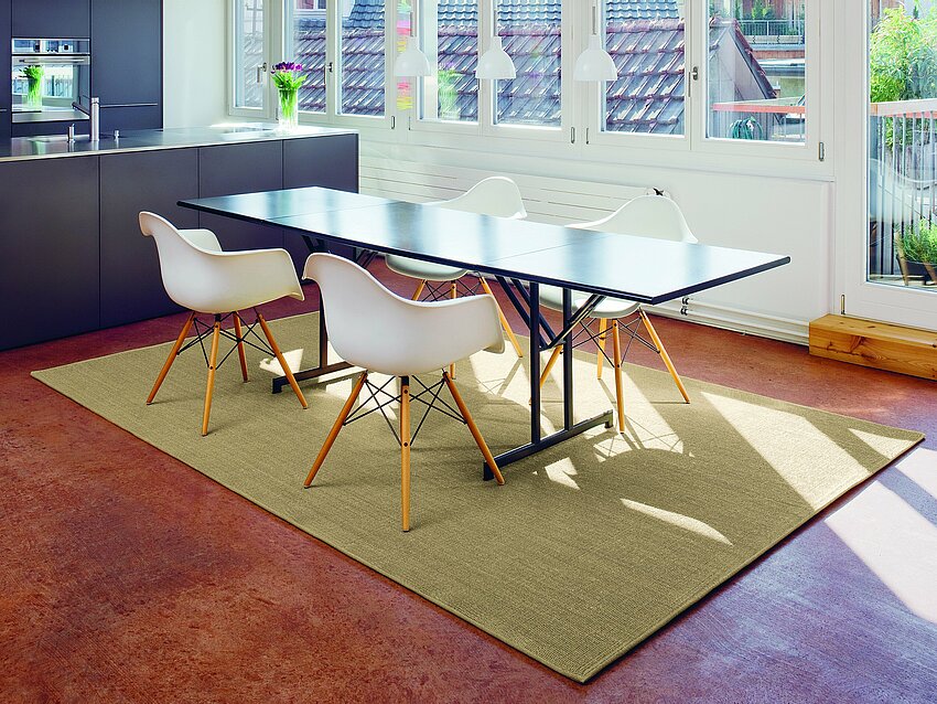 Surface Haargarn Composition 63% Sisal, 37% Haargarn Backing CottonBac Width of rolls (cm) approx. 400 Length of rolls (m) approx. 25 Rugs frei wählbar Pile weight (approx.) ca. 1300 Total weight (approx.) ca. 2000 Total height (approx.) ca. 5.5 Burning class NPD **** Thermal resistance (m² K/W) > 0.17 Application areas Hotel, Residential Kollection Classics