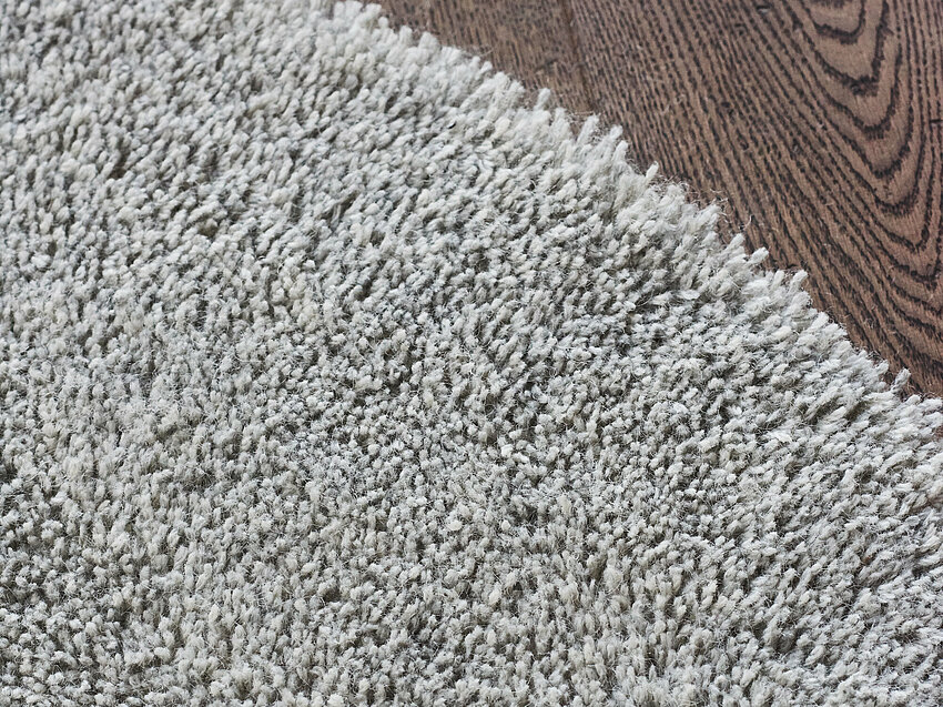 RUCKSTUHL SCHWARZNASE is a carpet made entirely in Switzerland by Ruckstuhl. The long, soft wool from black-nosed sheep from the Zermatt region is processed by regional partners and arrives at our manufactory as a purely natural product. Here we produce an undyed, completely natural carpet from the high-quality wool yarn: RUCKSTUHL SCHWARZNASE. The black nose is a horned Valais mountain sheep closely related to the primeval sheep. Its long, muted white wool is soft, poor and consists of 85% air - ideal for the microclimate in any room.