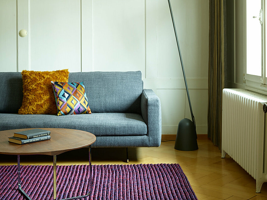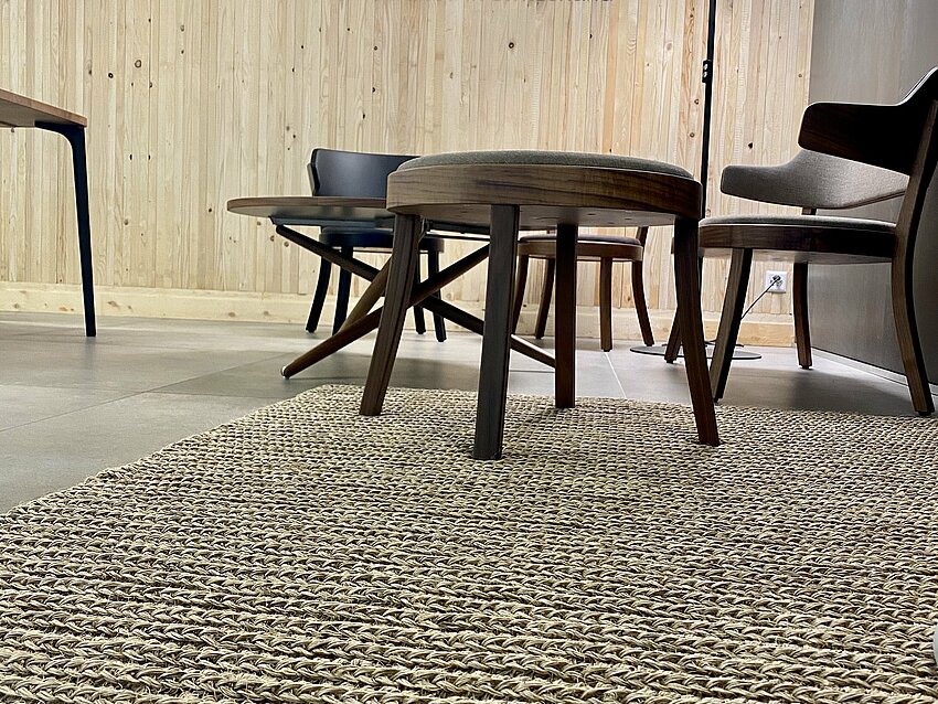The fique fiber comes from Colombia. In partnership with a knitting enterprise, Ruckstuhl has made the fiber a new addition to its assortment. The natural material is spun by hand in the Colombian Andes, and then knitted into uniquely beautiful carpets using big knitting needles.