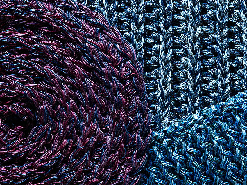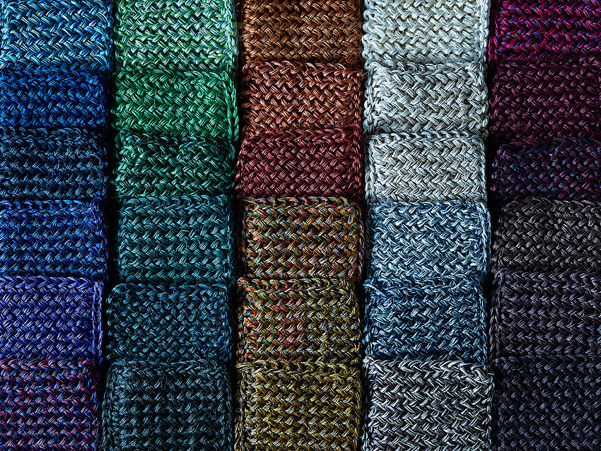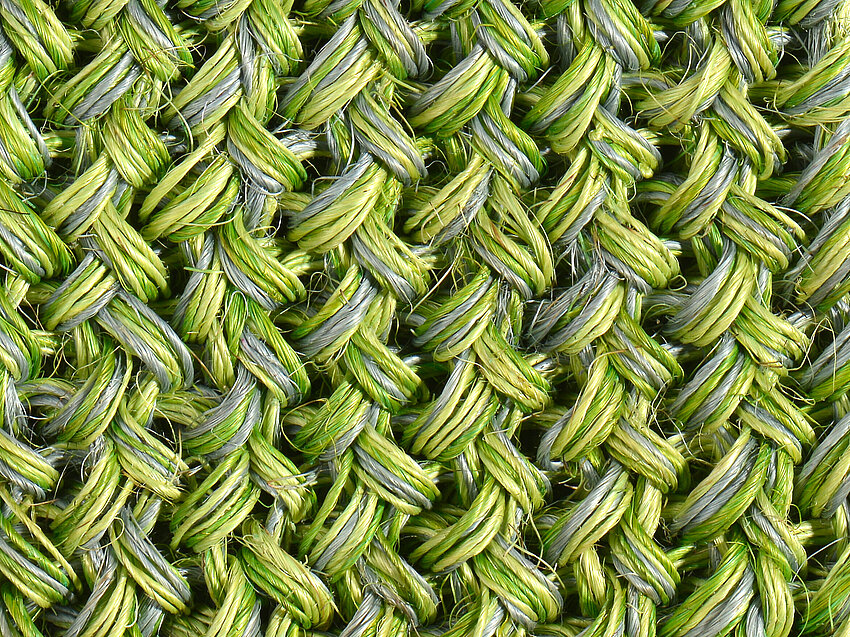 The fique fiber comes from Colombia. In partnership with a knitting enterprise, Ruckstuhl has made the fiber a new addition to its assortment. The natural material is spun by hand in the Colombian Andes, and then knitted or corcheted into uniquely beautiful carpets using big knitting needles.