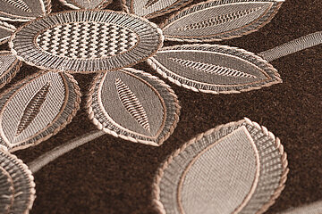 Embroidery becomes an art. Stitch by stitch, your own patterns are also embroidered into the wool felt carpet. A refinement that sets no limits to creativity.