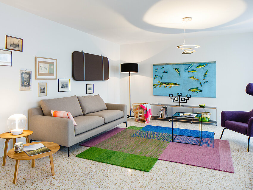 Les quatre saisons. La collection Stagione invite au voyage à travers les saisons. En collaboration avec le trio de designers d’atelier oï, Ruckstuhl a trouvé des voies d’inspiration et des possibilités de mise en oeuvre. Les quatre créations en laine ainsi nées sont modernes et offrent une véritable symphonie de couleurs. Tel un spectacle naturel, chaque carré de couleur possède une existence intrinsèque et se fond ici et là harmonieusement dans l’une des surfaces voisines. De nouveaux coloris définissent le style des quatre modèles. La forme a elle aussi fait volontairement l’objet d’une référence à l’esprit libre de la nature. Stagione n’est subordonné à aucune catégorie, mais forme plutôt des îlots de couleurs variés.