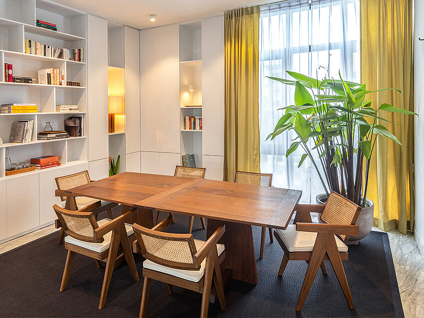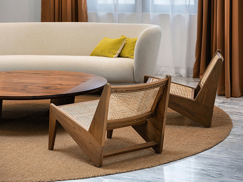 Für den Umbau der Botschaftsresidenz in Dhaka (Bangladesh) hat Interior Designerin Ulrike Fellner drei Ruckstuhl-Ikonen eingesetzt.