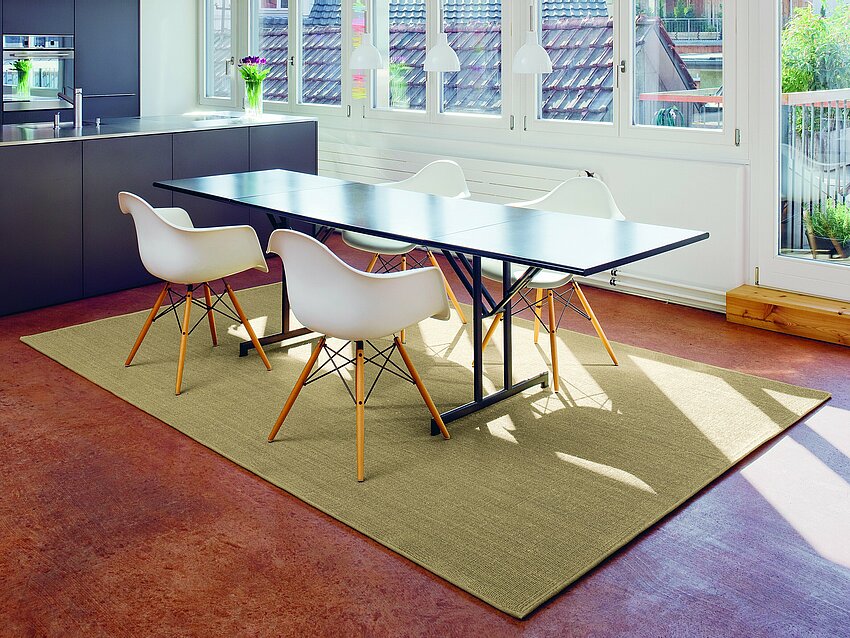 Superficie Filato di pelo Composizione 63% Sisal, 37% Haargarn Dorso CottonBac Larghezza del rotolo (ca.) ca. 400 Lunghezza del rotolo (ca.) ca. 25 Tappeti su misura frei wählbar Peso del pelo (ca.) ca. 1300 Peso totale (ca.) ca. 2000 Altezza totale (ca.) ca. 5.5 Classe d'incendio NPD **** Resistenze termica (m² K/W) > 0.17 Applicazione suggerita Alberghi, Abitazione Collezione Classics