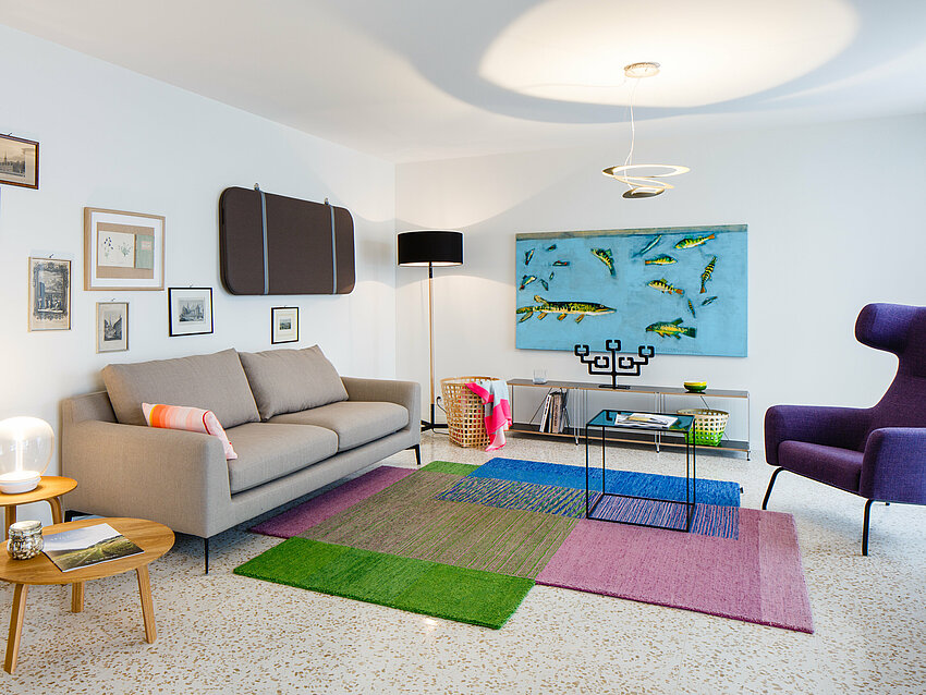 Le quattro stagioni. La collezione Stagione propone un viaggio alla scoperta delle quattro stagioni. In collaborazione con il trio di designer di atelier oï, Ruckstuhl è riuscita a trovare dei modi di interpretazione ricchi di ispirazione e possibilità concrete per la messa in opera. Le quattro creazioni il lana vergine uscite da questo progetto sono di una cromaticità forte e indubbiamente moderne. Come uno spettacolo della natura, ognuno dei rettangoli di colore è fine a se stesso e, qui e là, trapassa fluidamente in una delle superfici confinanti. Stagione non pare volersi subordinare ma punta piuttosto sull‘individualità e dà luogo a variabili isole di colore.