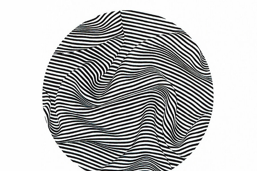 Come lanciato in aria in un gioco, un delicato foulard in chiffon di seta a strisce bianche e nere sviluppa l'idea da cui Trix e Robert Haussmann hanno tratto il loro iconico design a pieghe STRIPE, un motivo che dagli inizi degli anni '80 è il filo conduttore della loro variegata produzione.