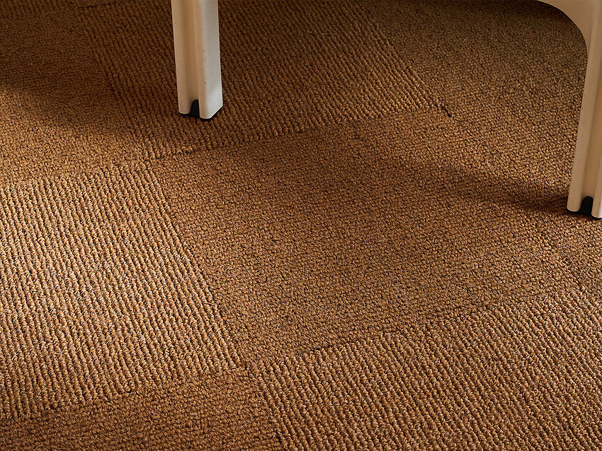 Inspiriert vom Geist des Brutalismus folgt diese Teppichfliese dem Prinzip der konstruktiven Ehrlichkeit. Material, Struktur und Funktion sind modular gedacht und flexibel in der Implementation: Die Kokosfliese von 50 x 50 cm / 100 x 100 cm - oder auf Wunsch im Sonderformat - lässt sich einfach und mit minimalem Einsatz von Klebstoff verlegen, auf kleineren Flächen sogar schwimmend.