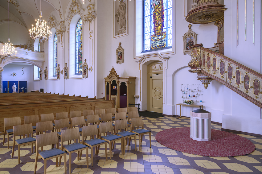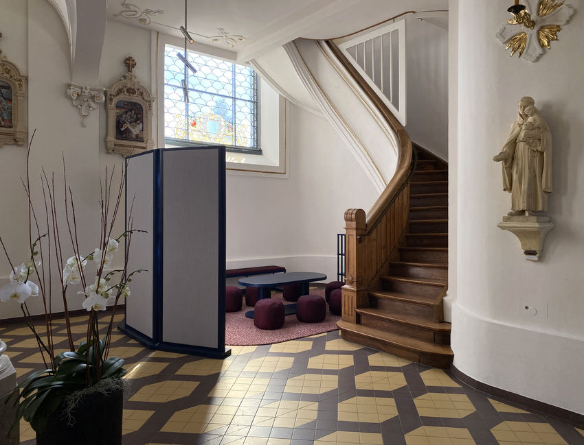 In enger Zusammenarbeit mit dem Designer Frédéric Dedelley realisiert unsere Manufaktur für die Kirche St. Johannes spezialangefertigte Wollteppiche im Robotufting-Verfahren. Sie definieren Handlungsräume, in dem sie den Altar und weitere Teile vom Boden abheben und Geborgenheit beim Rückzugsort vermitteln.