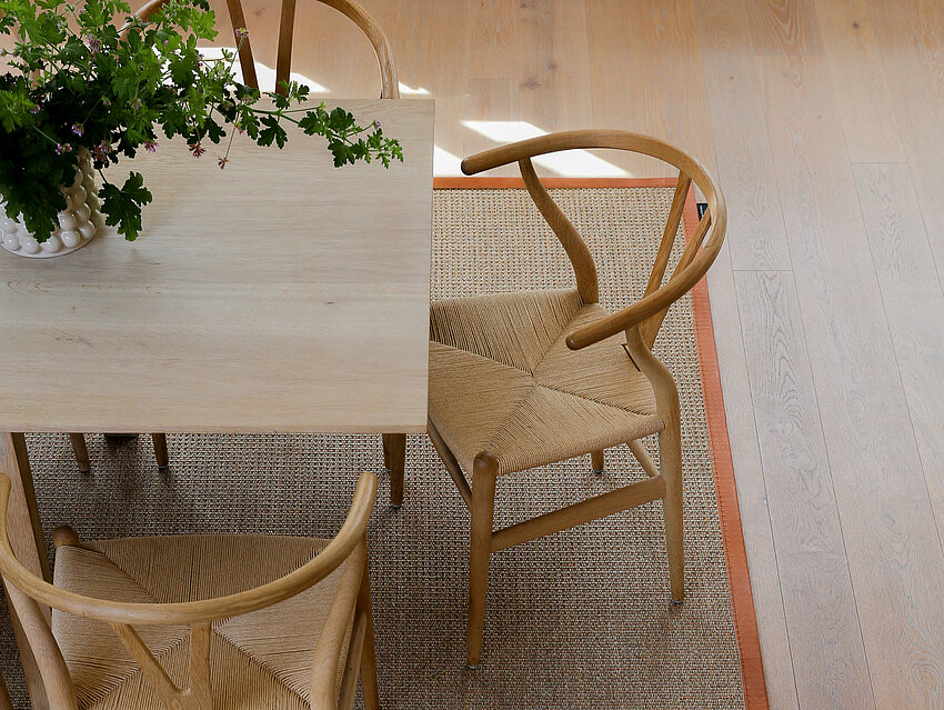 Eine expressive Struktur und die feine Melierung des Colorits machen diesen Sisalteppich aus.