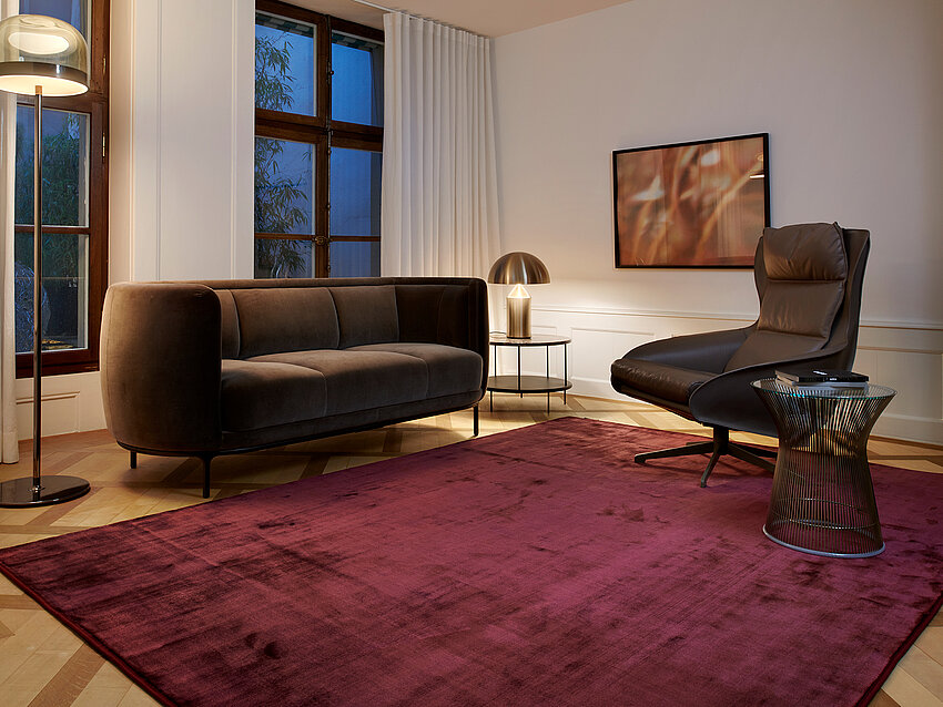 Während Ruckstuhl oft mit externen Designern zusammenarbeitet, entwirft Ruckstuhl einen grossen Teil der Produkte selbst. Über die Jahre hat das Unternehmen eine unverwechselbare Designsprache entwickelt, die zeitlos und überraschend zugleich ist. Der Fokus liegt stets auf hochwertigen Materialien, die Eleganz, Wärme und Behaglichkeit vermitteln und dabei strapazierfähig und langlebig sind.