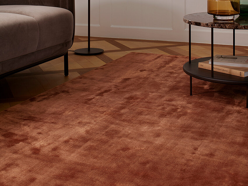 *Viskoseteppiche reagieren sehr empfindlich auf zu viel Wasser. Daher empfehlen wir den Einsatz im privaten Wohnbereich